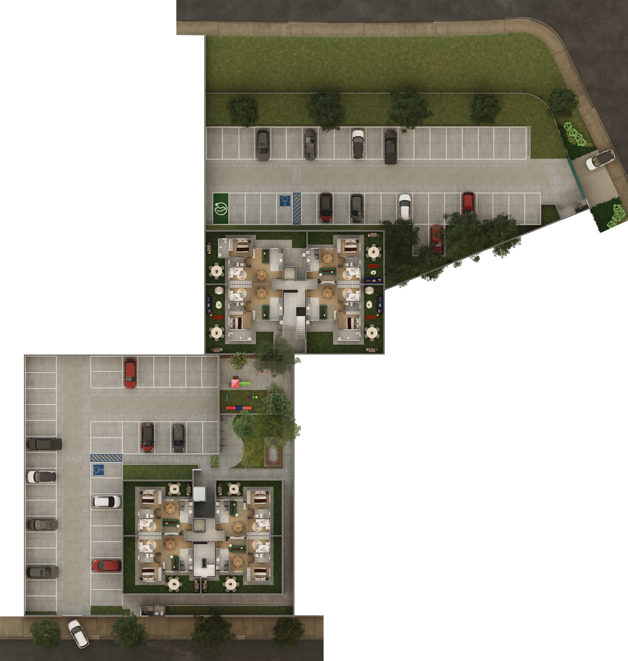 O empreendimento é composto por duas torres residenciais com elevadores e acessos de garagem independentes, proporcionando mais praticidade e melhor fluidez na rotina dos moradores.